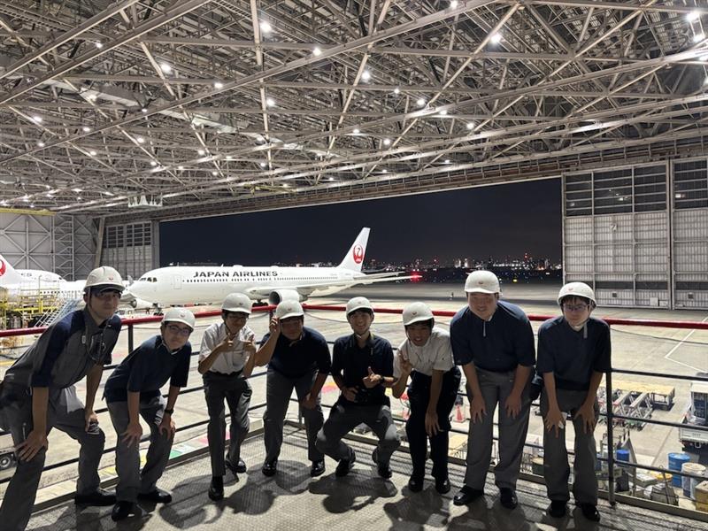2025年10月6日(月)、高校1年生7名が、整備士が引率するJAL格納庫見学に行ってきました。