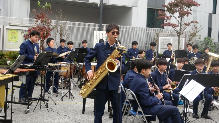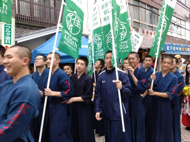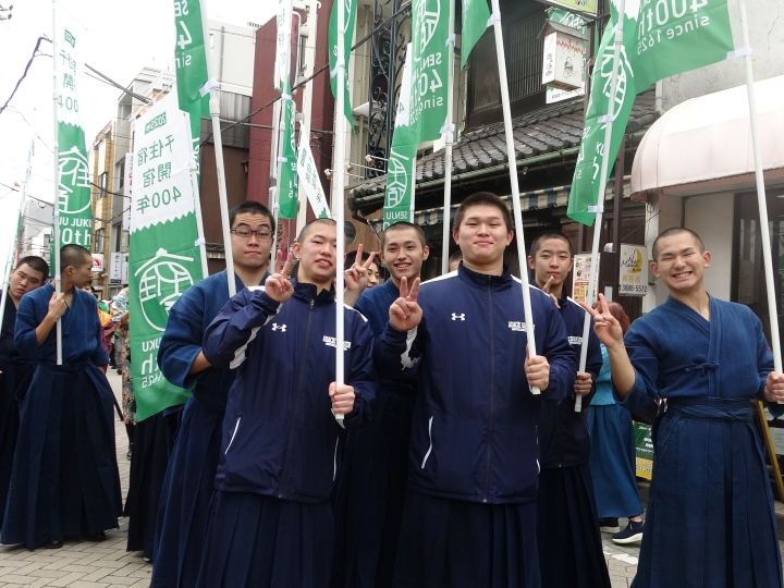 2日に行われた大名行列には、本校理事長と剣道部が参加し、ステージパフォーマンスには吹奏楽部が参加しました。