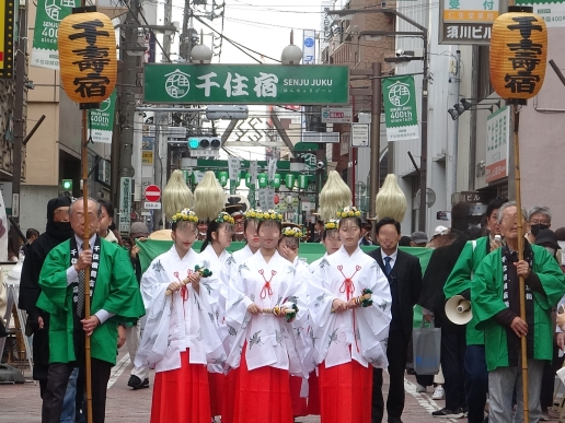 当日は天候にも恵まれ、旧日光街道である宿場町通り・ほんちょう商店街を中心に、千住の街は大変な賑わいでした。日本一長い宿場街商店街とのことです。