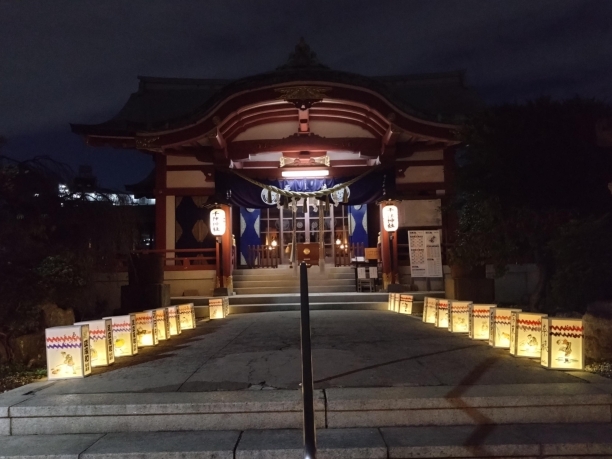 夜になると、街はプロジェクションマッピングや地口あんどんで彩られました。