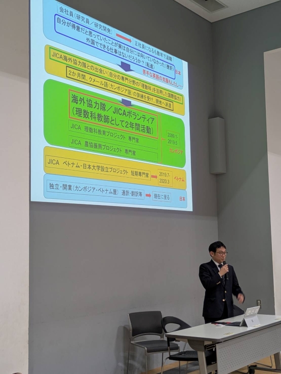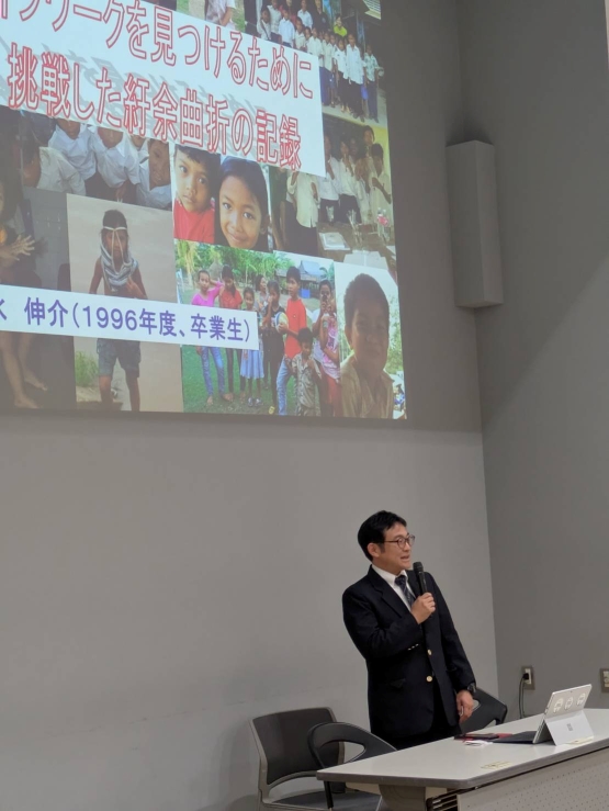 キャリア教育の一環として、「ライフワークを見つけるために挑戦した紆余曲折の記録」というタイトルでお話していただきました。