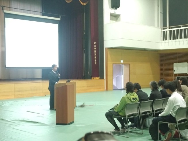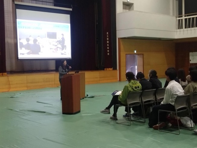 校長挨拶と教育方針、クイズ形式の学校・教育内容概要、進路指導、入試についてを、アダガクアンバサダーの司会で行いました。
