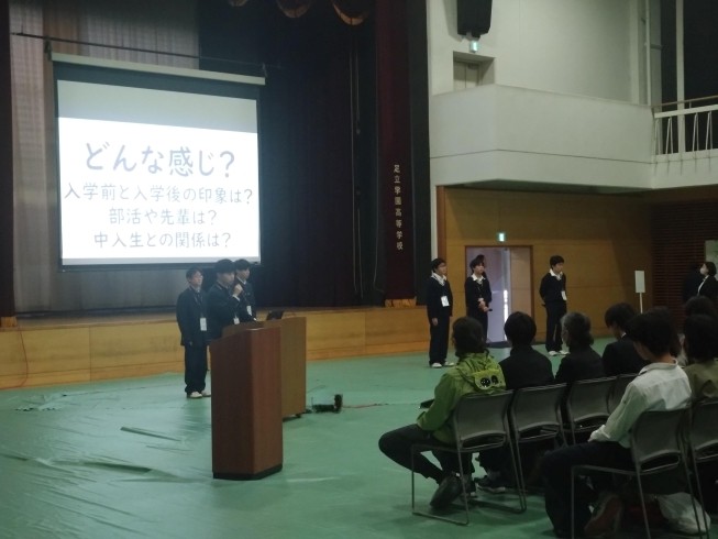 説明会開始前の生徒パネルディスカッションは、高校から足立学園に単願または併願で入学した5人のパネラーと、中学から入学している高3生の進行でお届けしました。