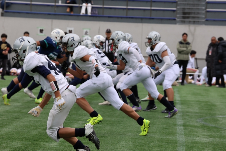後半に入ってからもよいフィールドポジションが確保できず、相手チームに2つのタッチダウンを許し、0ー13で敗れました。