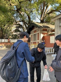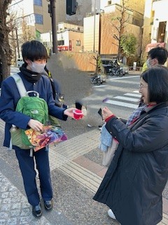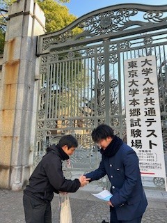 初日の1月17日、試験会場前に、高3の先生たちが激励に駆けつけました。