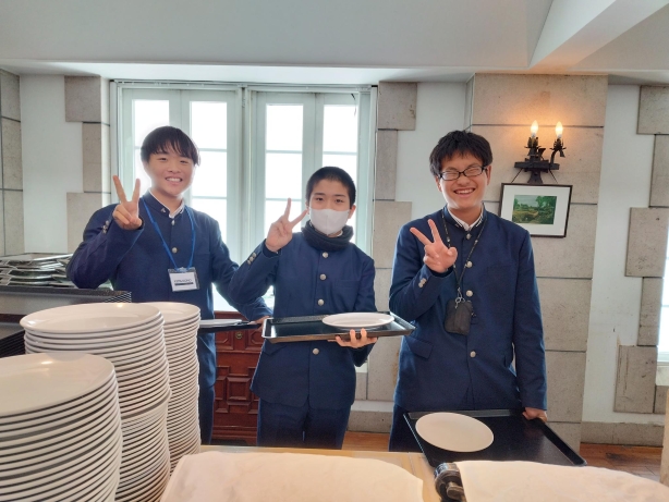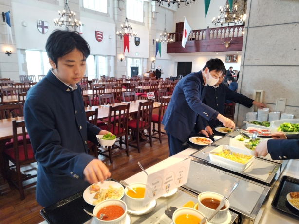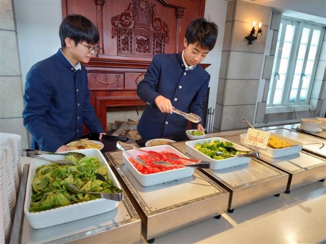 まずはビュッフェ形式のランチをとりました。少し緊張した雰囲気ながら、各々好きなものを取り、食べていました。