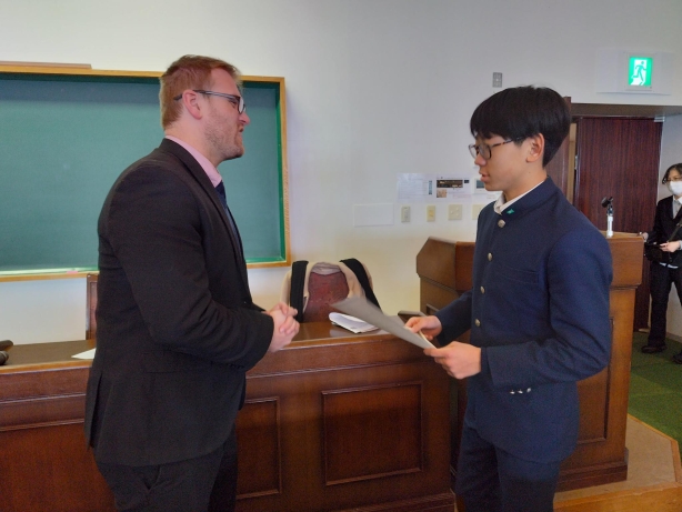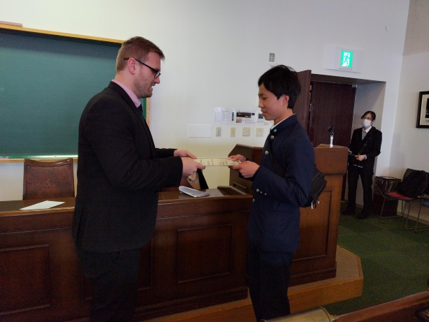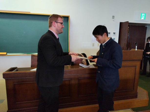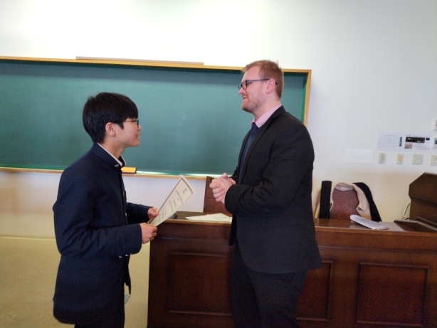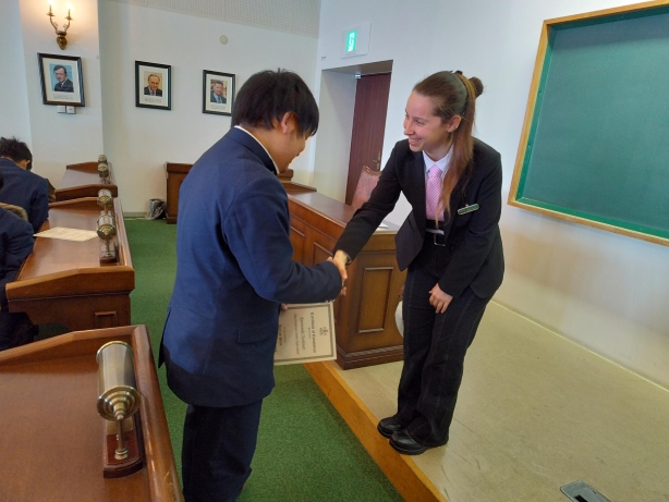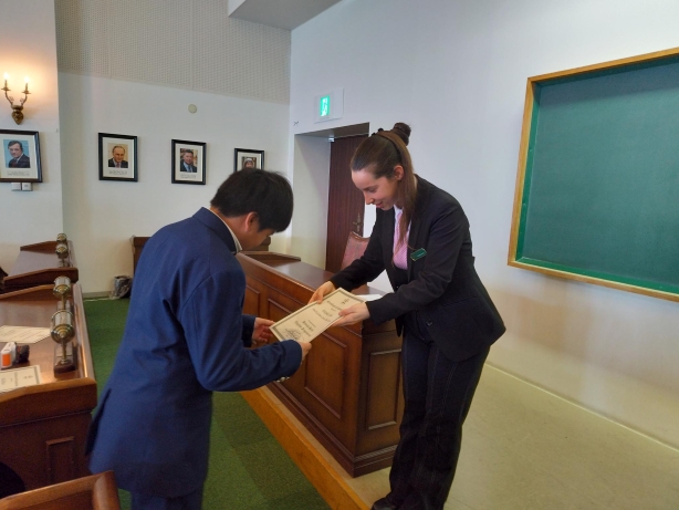 朝の授業終了後、修了証書授与式が行われ、1人1人に修了証書が手渡されました。