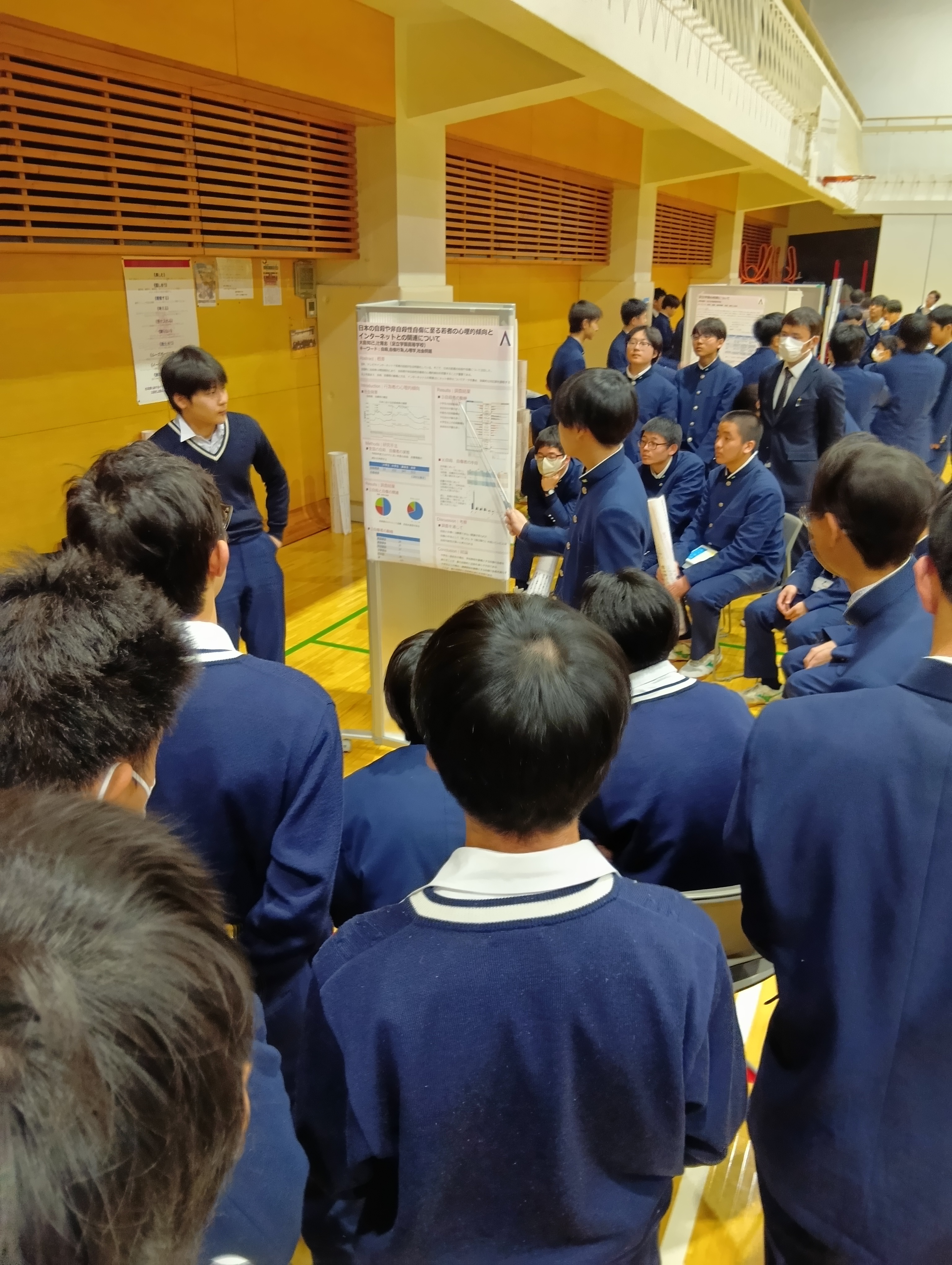 1年間の探究活動のまとめとして、高校1年生の探究コースの生徒や本校の教員、大学の先生方、
