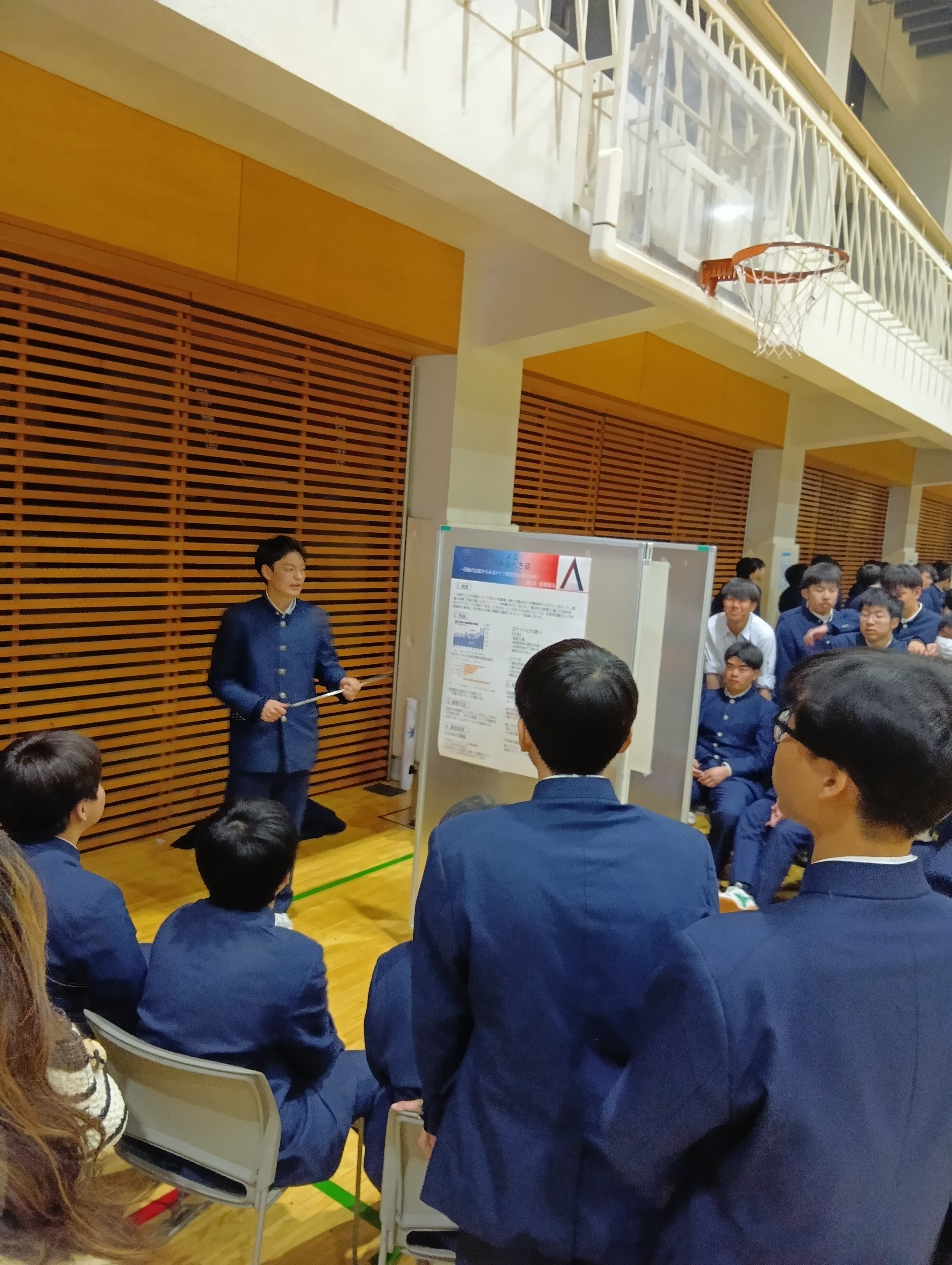 保護者の方を前に発表をします。
