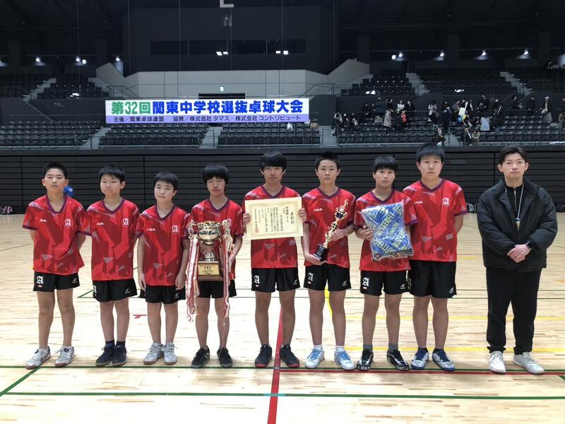 令和8年3月14・15日に栃木県宇都宮市の日環アリーナ栃木で行われた、第32回関東中学校選抜卓球大会で準優勝となりました。