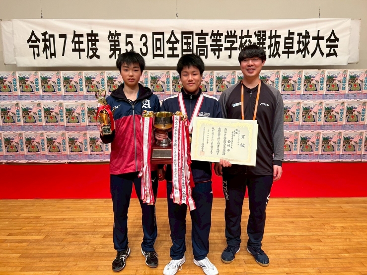 令和8年3月22~25日に新潟県のリージョンプラザ上越で行われた、第53回全国高等学校選抜卓球大会男子シングルスで、金城 歩君(高1)が優勝しました。