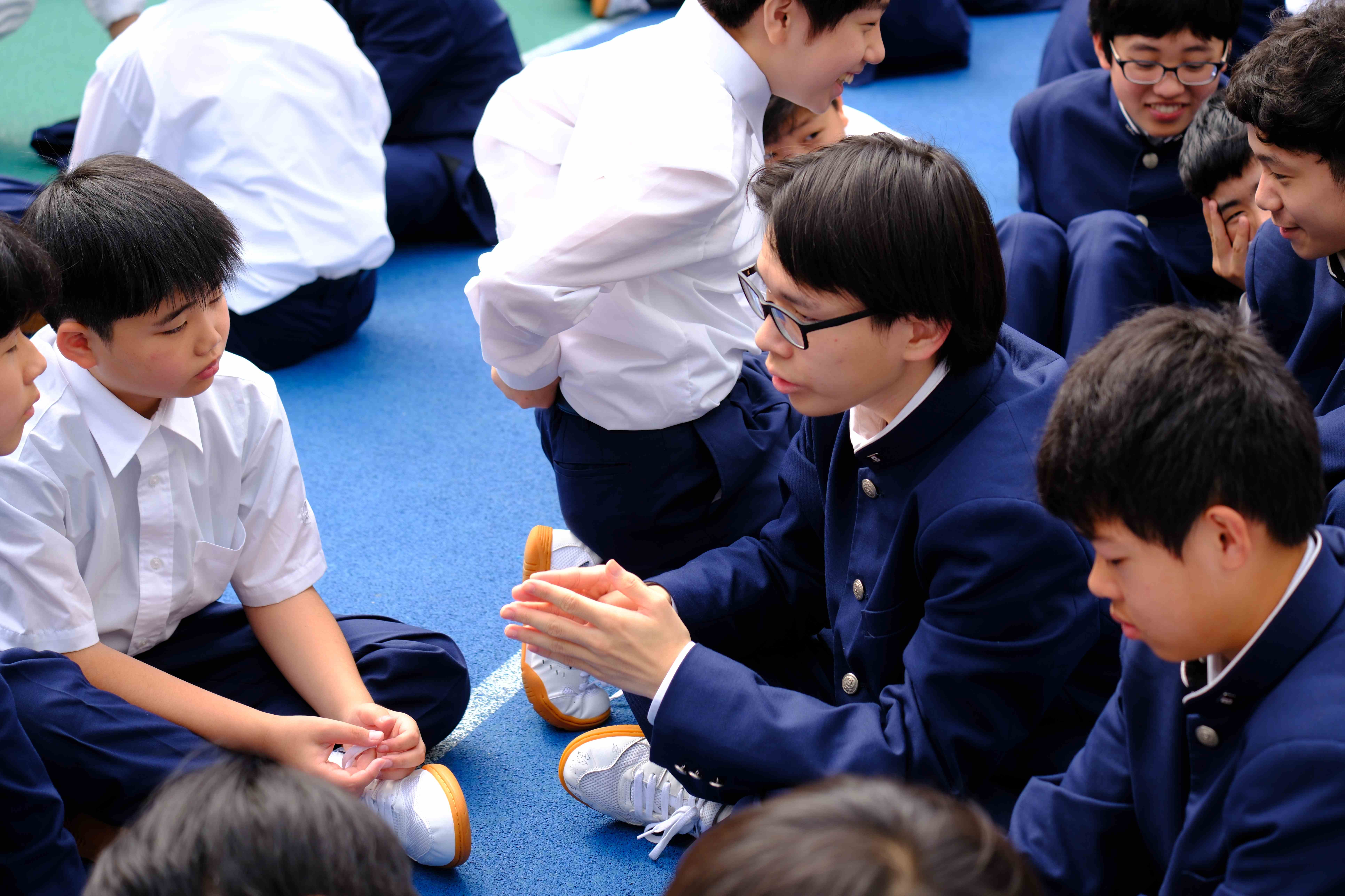 当日は学年縦割り班で実施され、中学2・3年生の生徒が中学1年生をリードしながら、学校生活のことなどを教えていきます。